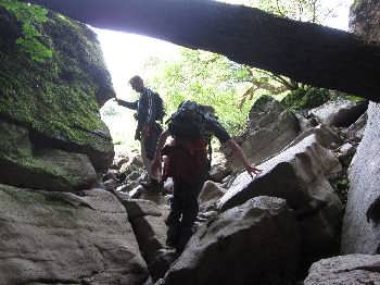 The main entrance is situated in the (often dry) streambed of the infant River Nidd, but in times of spate the river pours spectacularly in through a series of waterfalls.
