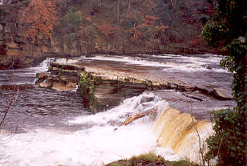 At Richmond in Swaledale the River Swale cascades down a series of rocky steps which are known as Richmond Falls.